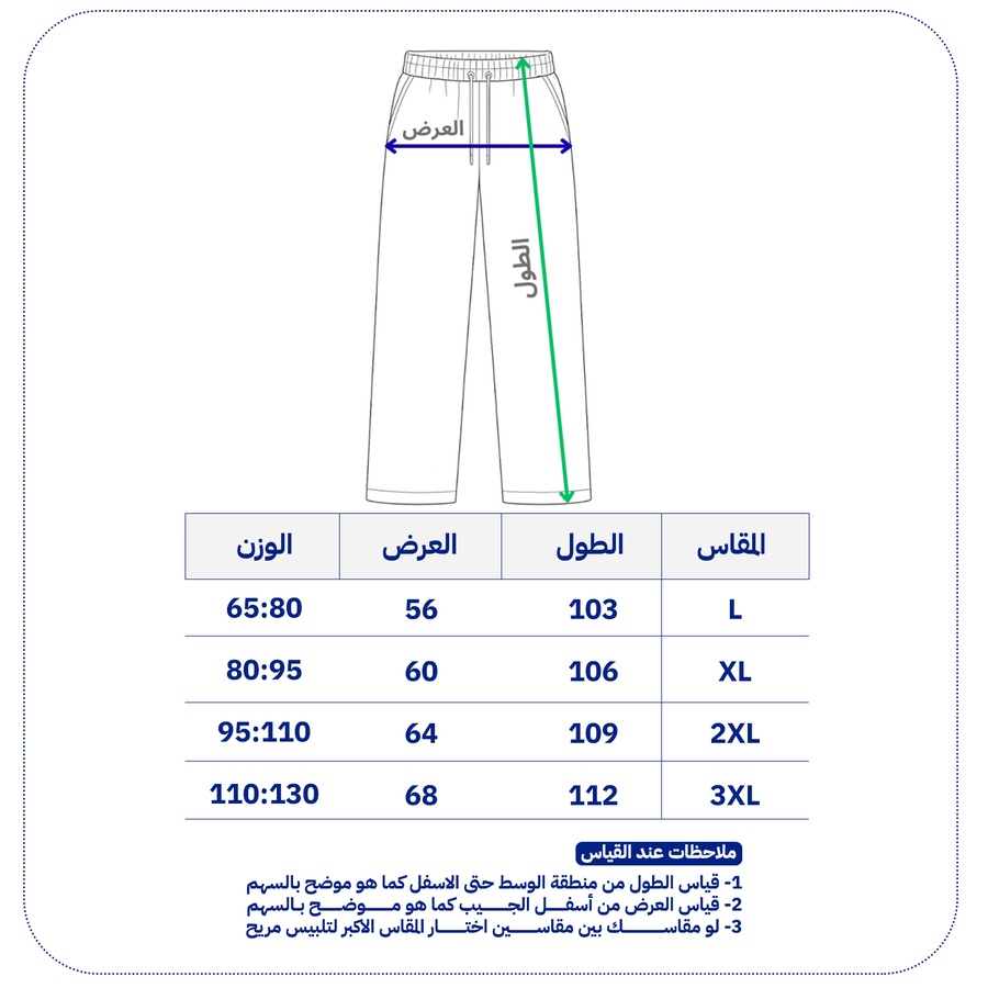 متوفر بمقاسات من L إلى 3XL مع جدول مقاسات محدد بالأوزان علشان تختار المقاس المناسب بدقة.